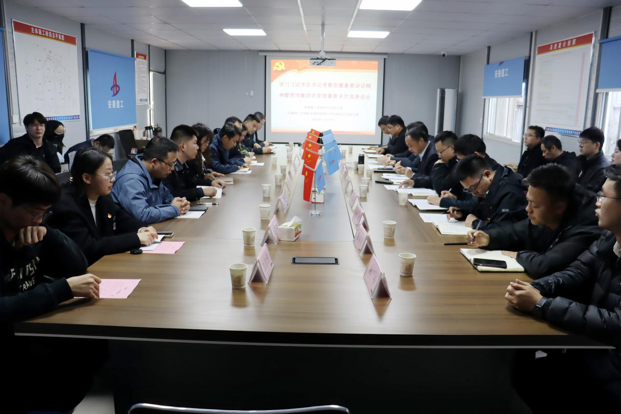 隨后全體黨員來到安徽建工阜南縣經(jīng)濟開發(fā)區(qū)科技創(chuàng)新產(chǎn)業(yè)園項目觀摩學(xué)習(xí),并在項目部召開會議,會議由劉軍主持。會上,集中學(xué)習(xí)了習(xí)近平總書記考察安徽重要精神,全體黨員根據(jù)近期對“安徽黨員大講堂”的學(xué)習(xí),結(jié)合自身工作領(lǐng)域積極研討發(fā)言。劉軍強調(diào),一要從"王家壩"精神中凝聚奮進力量,以更加飽滿的熱情、更加扎實的作風(fēng)投身實際工作,為集團發(fā)展貢獻自身力量;二要充分發(fā)揮黨建引領(lǐng)保障作用,努力構(gòu)建“資源共享、優(yōu)勢互補、互相促進、共同提高”的黨建工作新格局,進一步激發(fā)廣大黨員忠誠盡職、奮勇爭先的干事創(chuàng)業(yè)激情;三要以更加頑強的斗志攻堅克難,以更加昂揚的氣勢創(chuàng)新突破,以更加務(wù)實的作風(fēng)鉆研奉獻,奮力開創(chuàng)經(jīng)營新格局,打造更多的標(biāo)桿工程和品質(zhì)工程,為集團轉(zhuǎn)型發(fā)展、高質(zhì)量發(fā)展、大發(fā)展添磚加瓦。